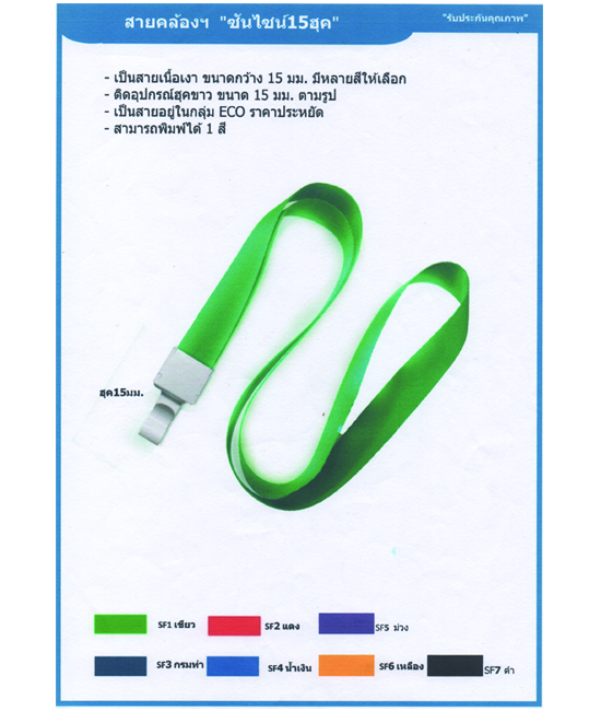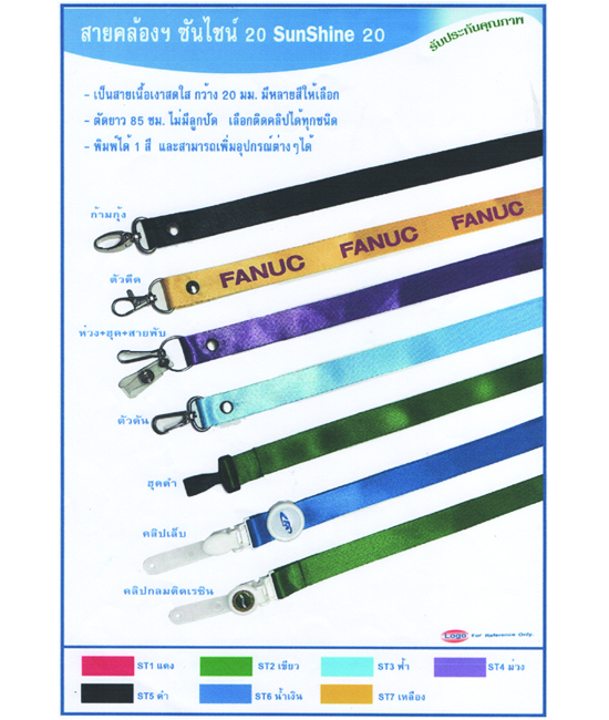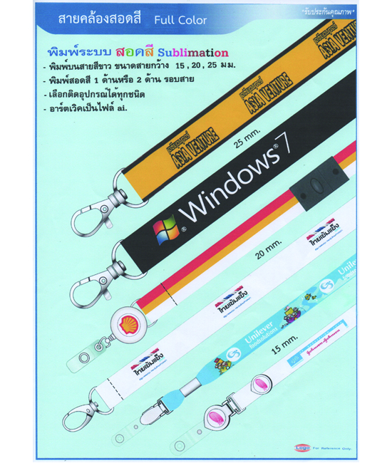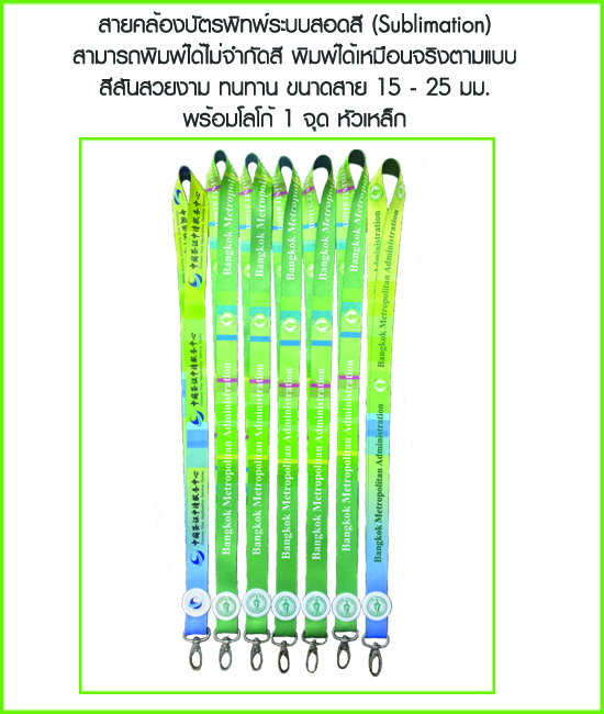 สายคล้องบัตรพิมพ์ระบบสอดสี (Sublimation) สามารถพิมพ์ได้ไม่จำกัดสี พิมพ์ได้เหมือนจริงตามแบบ สีสันสวยงานทนทาน ขนาดสาย 15-25 มม
