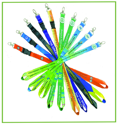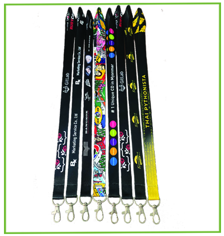 สายคล้องบัตรพิมพ์ระบบสอดสี (Sublimation) สามารถพิมพ์ได้ไม่จำกัดสี พิมพ์ได้เหมือนจริงตามแบบ สีสันสวยงานทนทาน ขนาดสาย 15-25 มม.